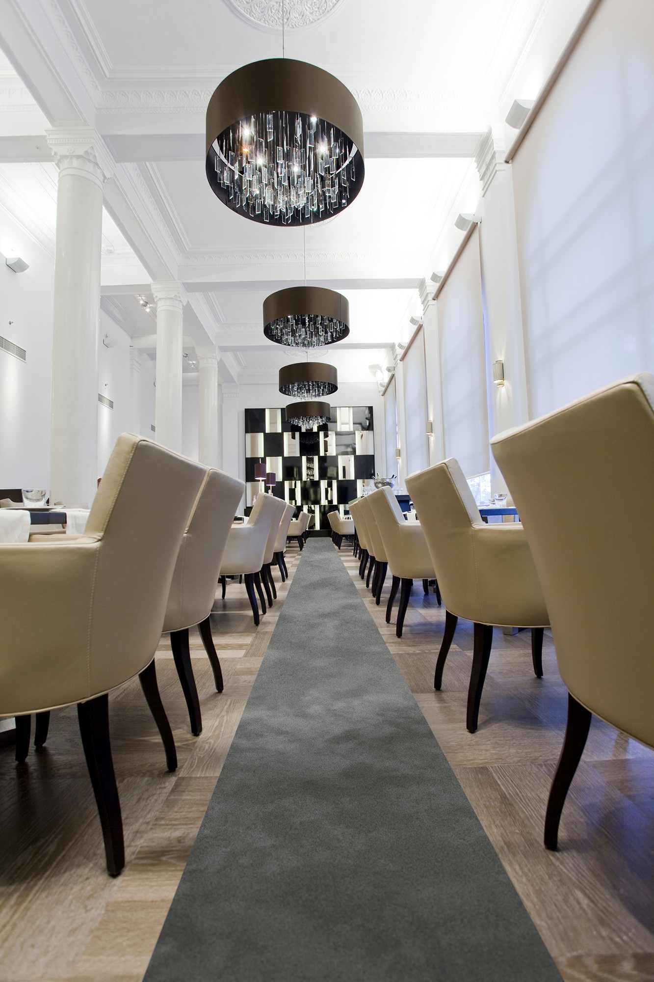 Esta delgada colección de seda falsa (poliamida) es brillante y conveniente para las zonas de alto tráfico. Fácil de limpiar, puede tenerlo instalado (para habitaciones, pasillos, restaurantes o escaleras) o puede elegir un tamaño y terminarlo como una alfombra (ya sea con una encuadernación o un mini borde).